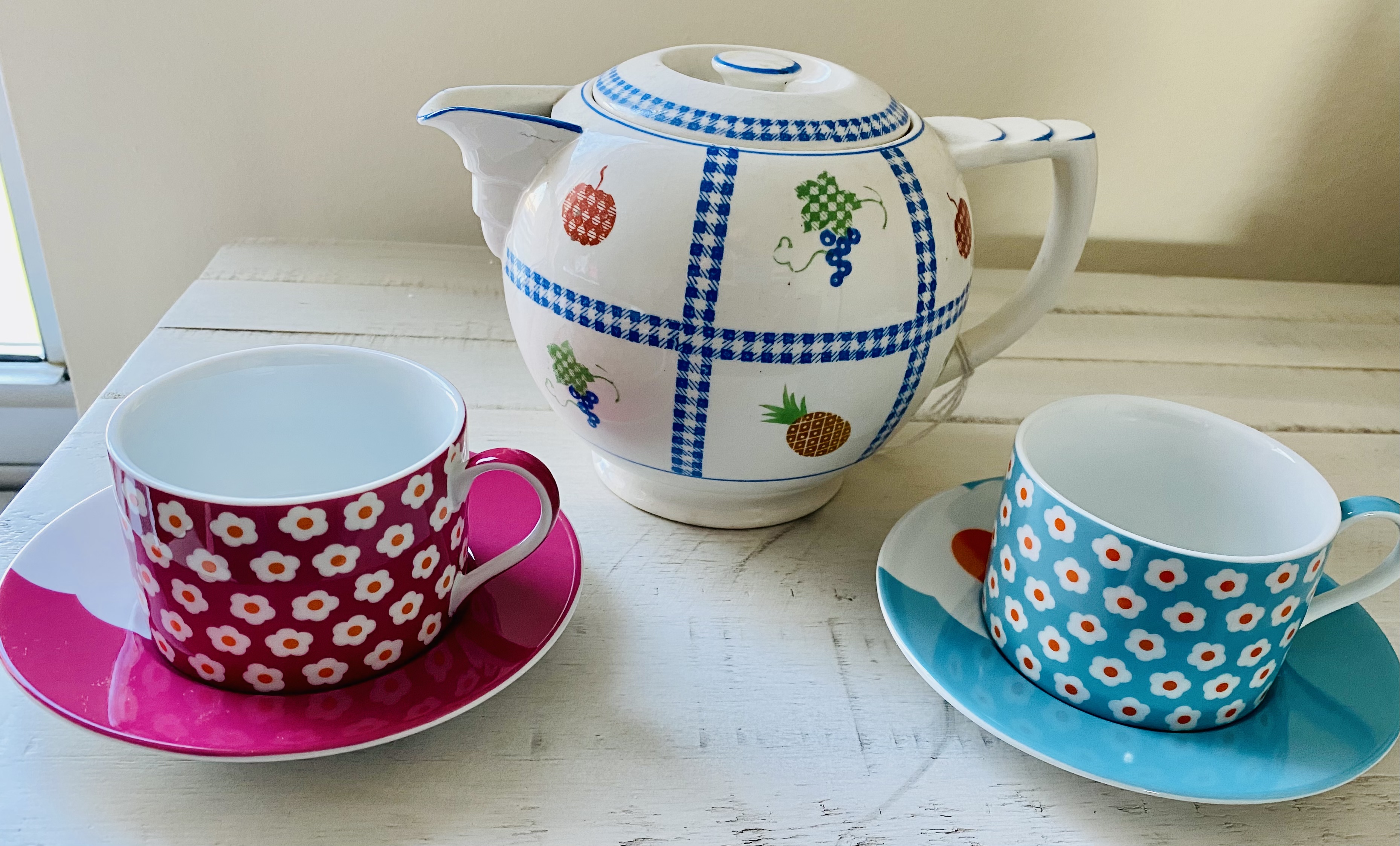 Just looking at the cups and teapot is enough to perk one up! The tea can wait. 😁