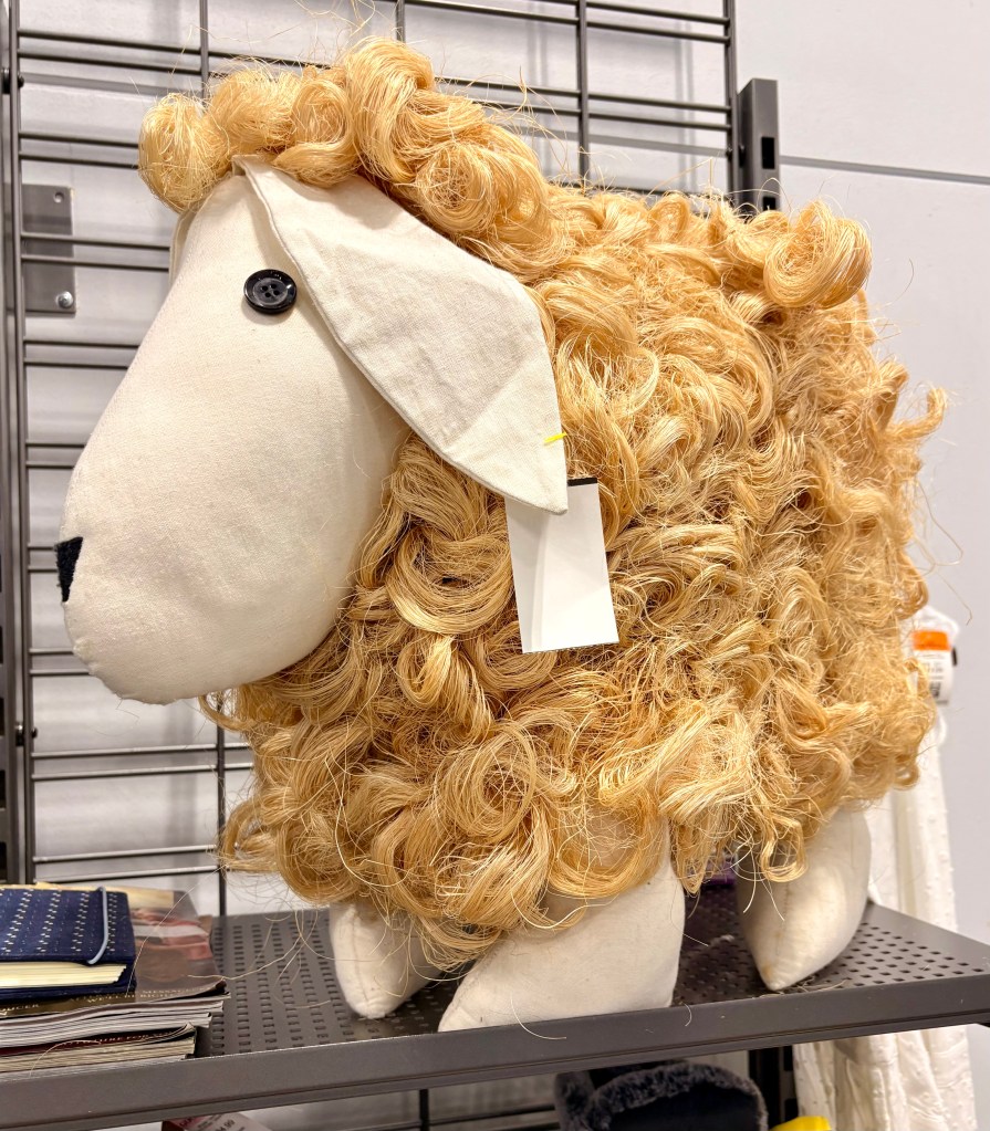 I was at the store, standing in line when this sheep caught my attention. It was the hair, it looked cute, but also creepy, like real hair.