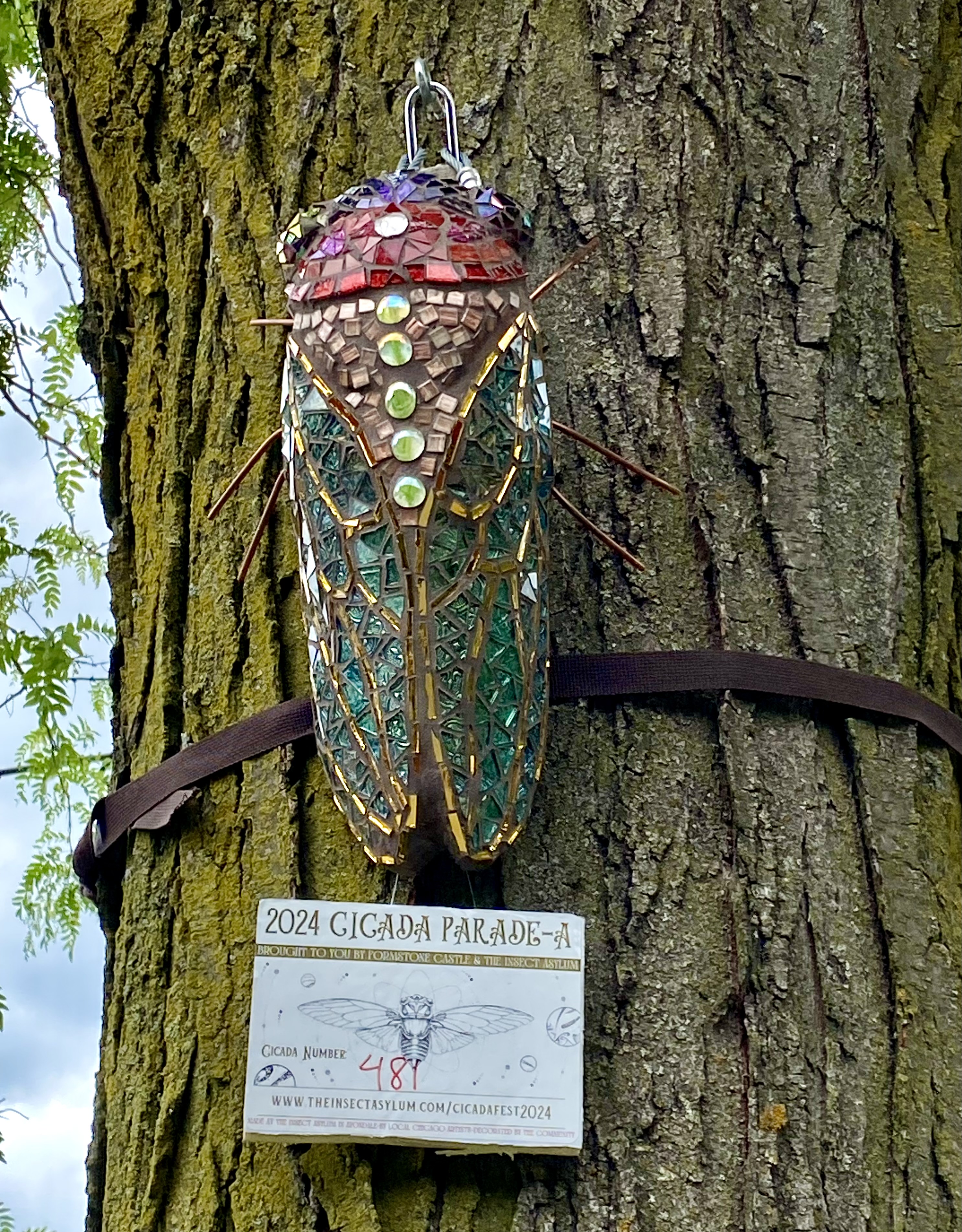 The Insect Asylum (taxidermist & insect museum) and Formstone Castle Art (create art for festivals & events) are promoting this Cicada Parade-A project to anyone who wants to participate. You sponsor a cicada by paying a fee, then you can decorate your cicada and it is put up somewhere in IL. Although, I saw a video that mentioned someone out of state bought a cicada to bring to their home town. So, everyone can participate.