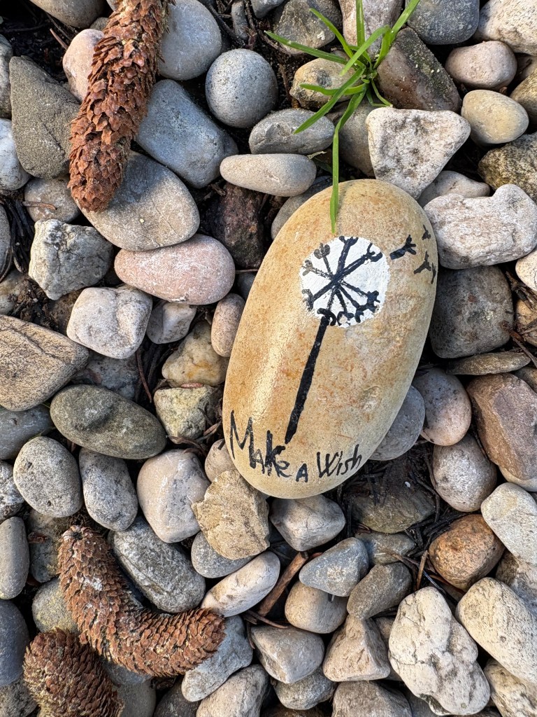 Some Canadians were walking by, I showed them. One of them immediately said, “that’s a dandelion,” there is spiritual significance in that. I hadn’t noticed the dandelion. I was focused on the words, “Make a Wish.”