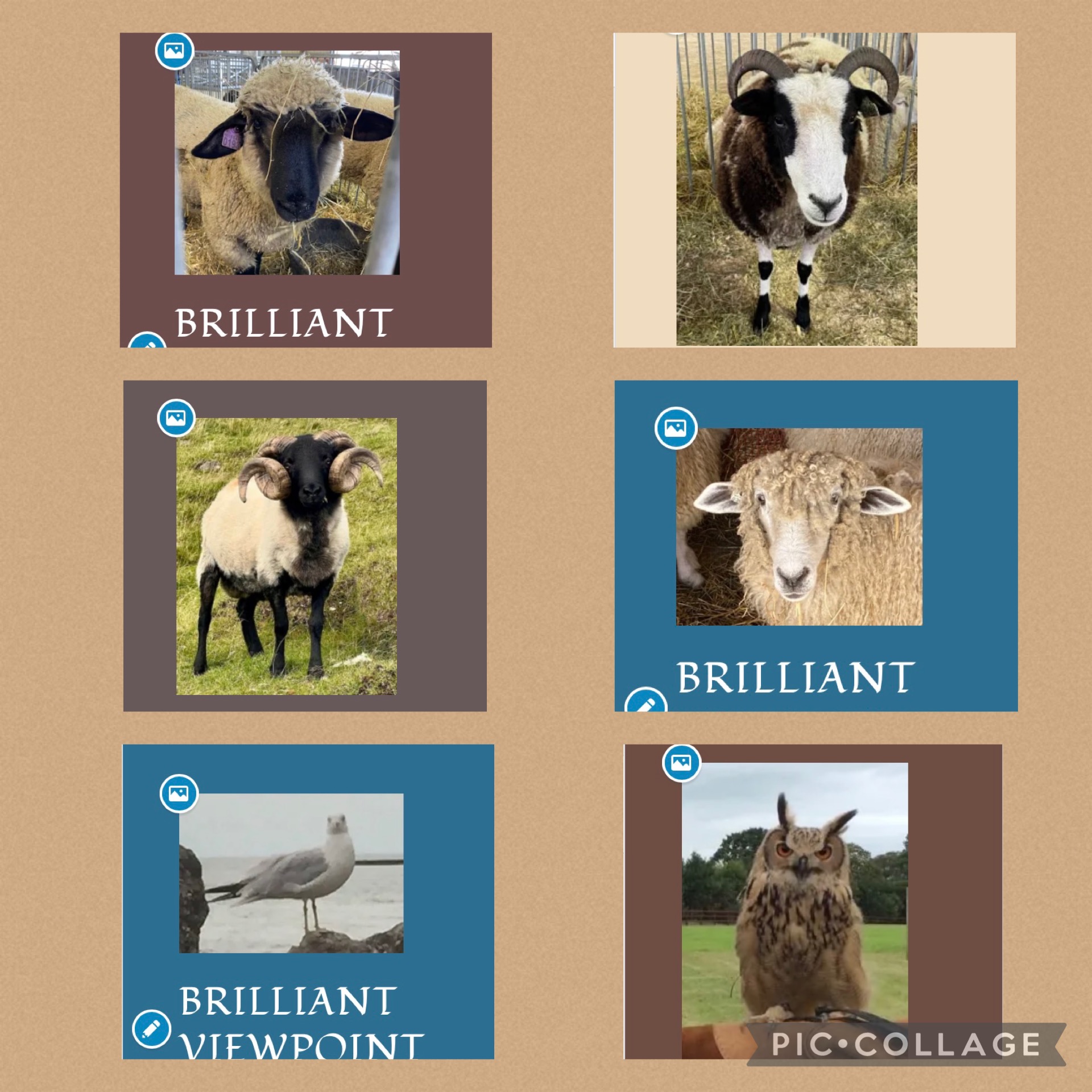 Each one special in a different way. I do like that sheep on the top right. Doesn’t he speak to diversity and uniqueness? The owl was amusing, as well as the other sheep.