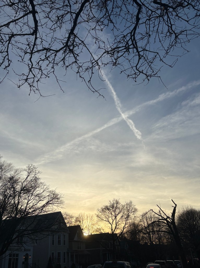 I was walking and happened to look up and saw these lines in the sky. For some reason, I immediately thought of Tic Tac Toe, we just need another two lines to set up the board.