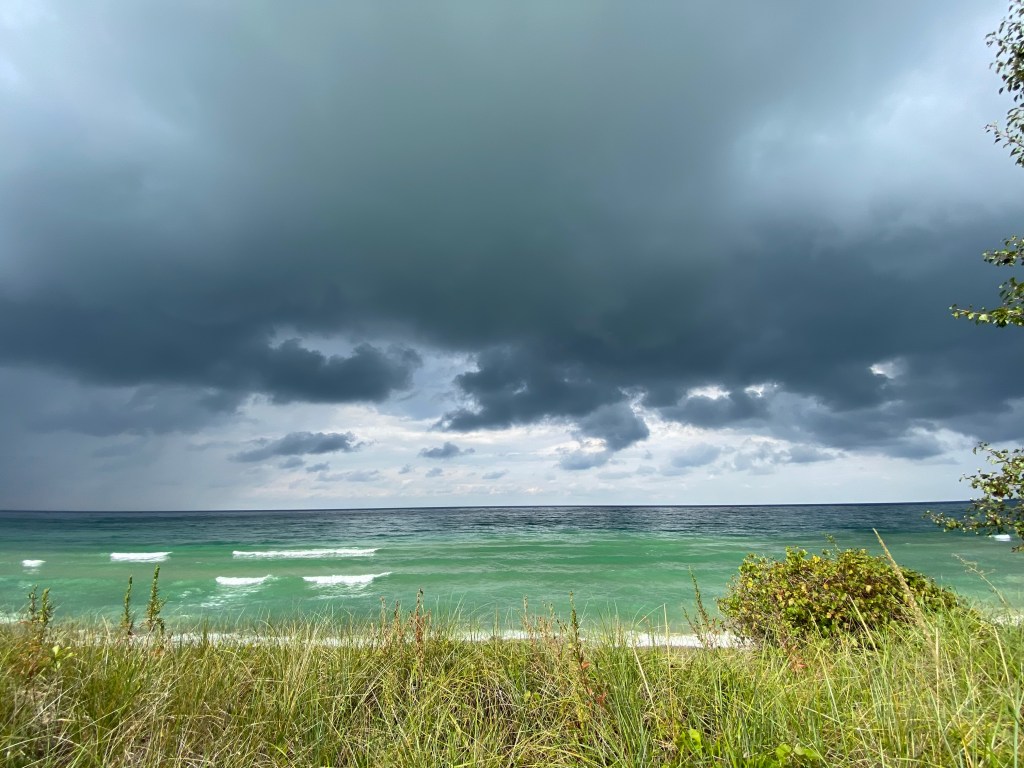 The waves were rather calm for the storm that was coming. Even so, I sensed from the dark clouds looming over head and the way the temperature felt that I had to take cover. A tornado could form in this type of storm. While I was mesmerized by the colors of the Lake and the dark clouds, I had to find shelter.