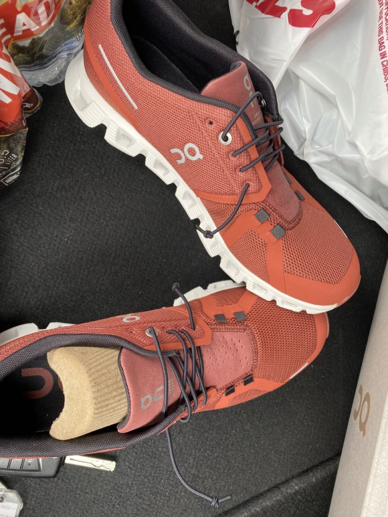 Case in point, I found these orange ON gym shoes. I’m not familiar with this brand. Turns out they are from Switzerland, founded in 2010 by three guys who wanted a good running shoe. They’ve been worn by a lot of athletes who have won in their fields. I tried to find out what the logo on the shoe stands for, but couldn’t find anything. If you know, leave a comment.