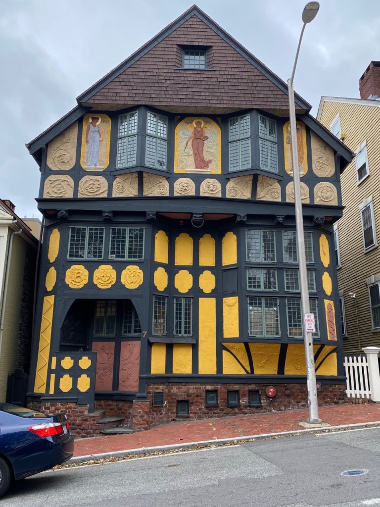 Another interesting house. I liked the BLUE doors, but they don’t seem to fit with the style of the house.
