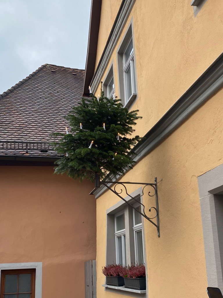 Another nice touch, they decorate with small Christmas trees outside their homes. They have electric candles on the trees. In the old days, they actually used real lit candles.
