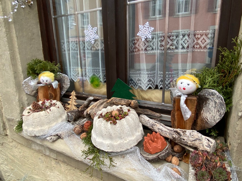 Walking in Rothenburg ob der Tauber, they had so many beautiful Xmas scenes in the windows. Look at this one of the Angel orchestra, how clever.