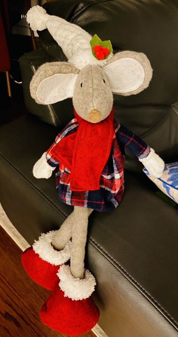 A few years ago, my daughter gave me this cute little mouse. My other daughter named her Elloise. I know today is supposed to be Thanksgiving, but I’m in the mood for Christmas too. So, I went to the closet, threw things here and there and FOUND Elloise. I fluffed her up, straitened her scarf and skirt. Volia! I SMILED AGAIN. Time to bring some joy to my house.