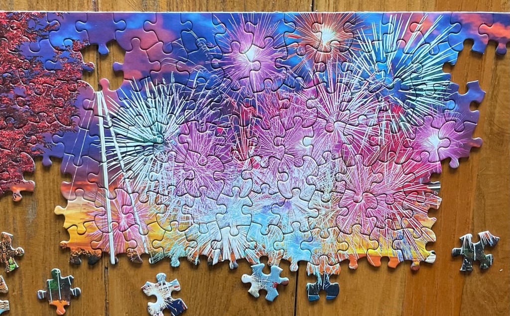 That means July 4th celebrations are around the corner. I’ve been eyeing this puzzle for a while. I was drawn to the Fireworks in the background. So, I took the plunge and bought it.